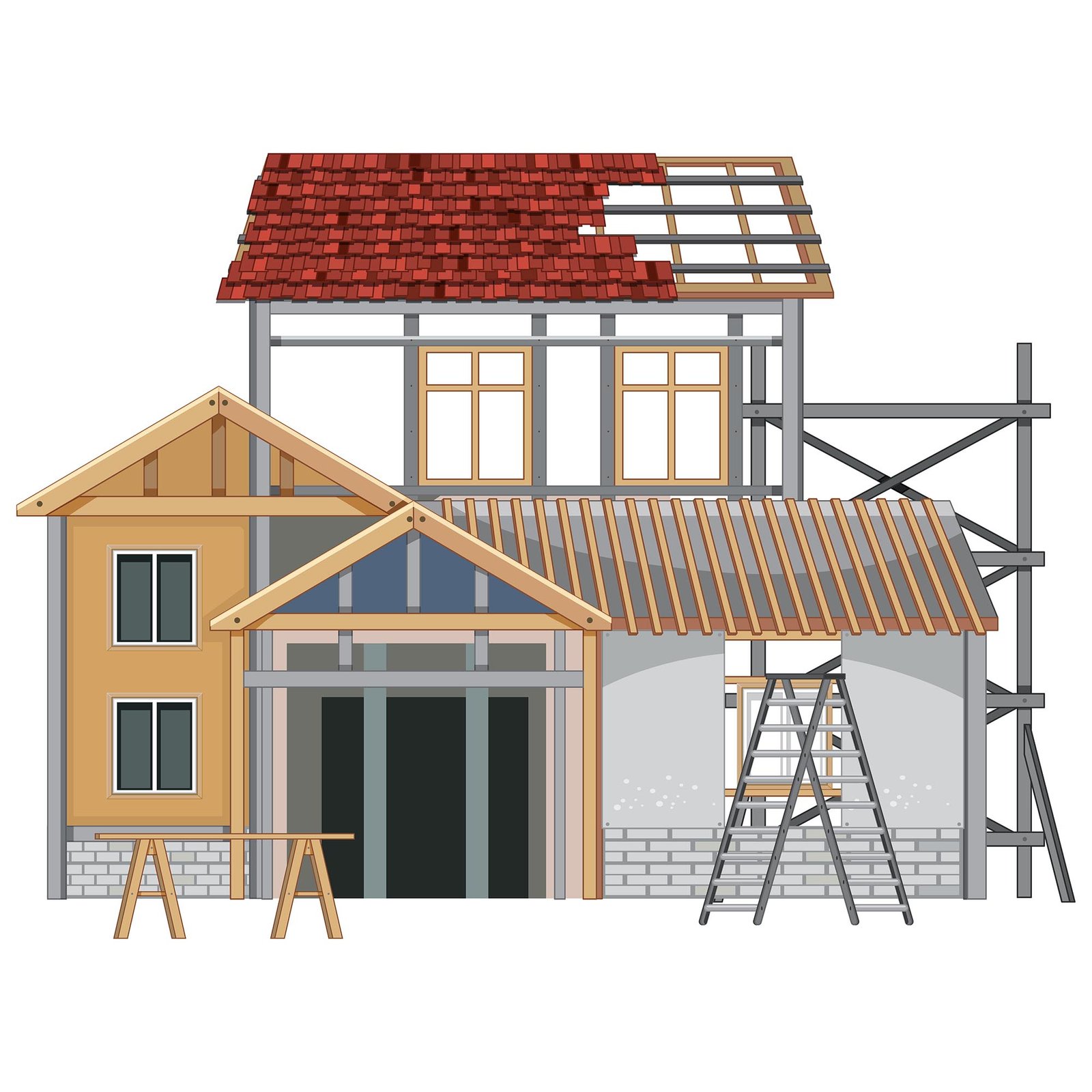 Build the superstructure: timber/steel/masonry framing, floors, walls, roof structure and stairs. Inspections for structural compliance.
